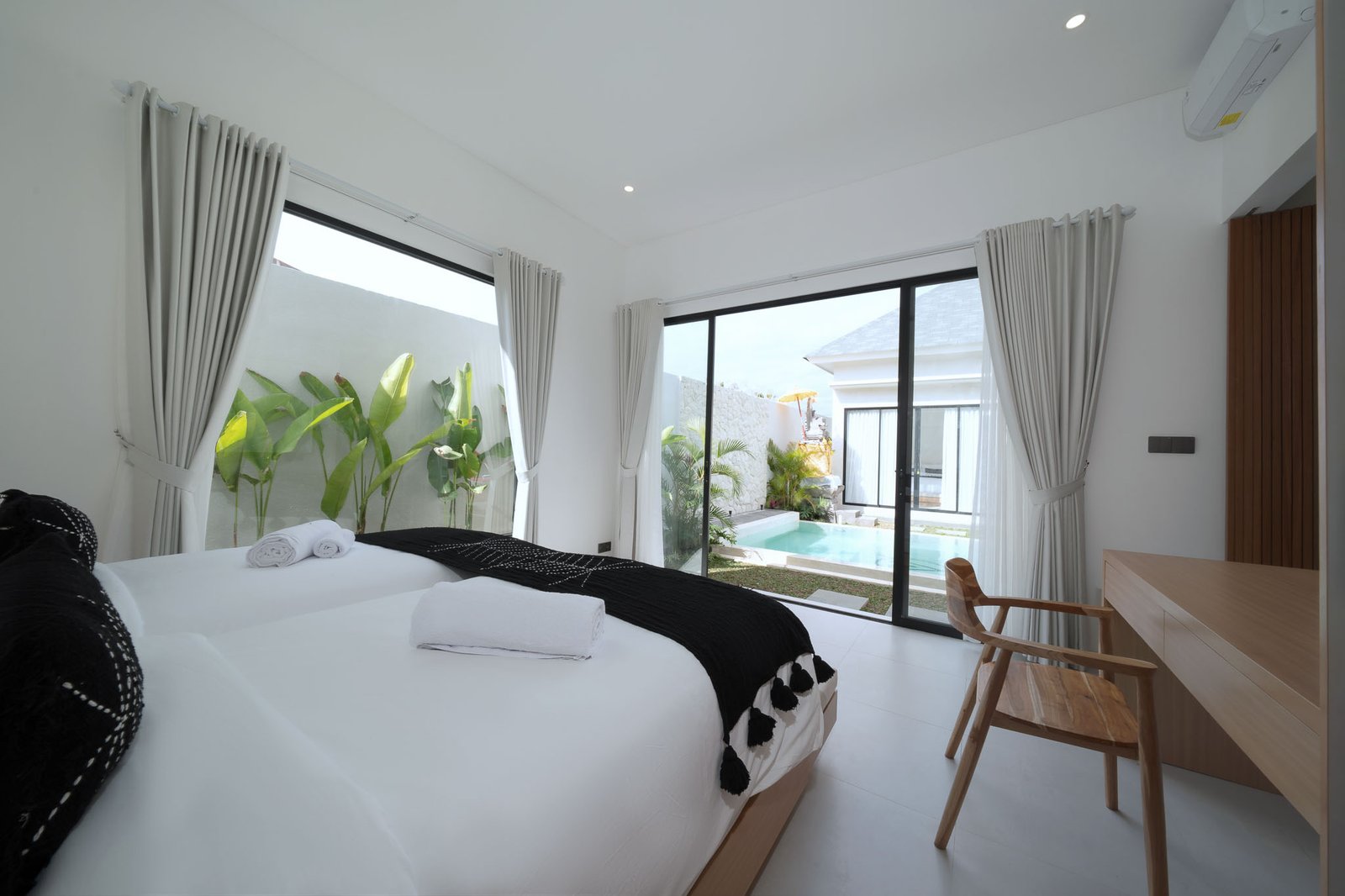 Guests can enjoy modern amenities including air-conditioned rooms, a fully equipped kitchen, outdoor dining areas, and serene balconies overlooking lush surroundings. The villa is conveniently located just minutes from Balangan Beach, New Kuta Golf, and the iconic Garuda Wisnu Kencana Cultural Park, making it the perfect base to explore the Bukit Peninsula.